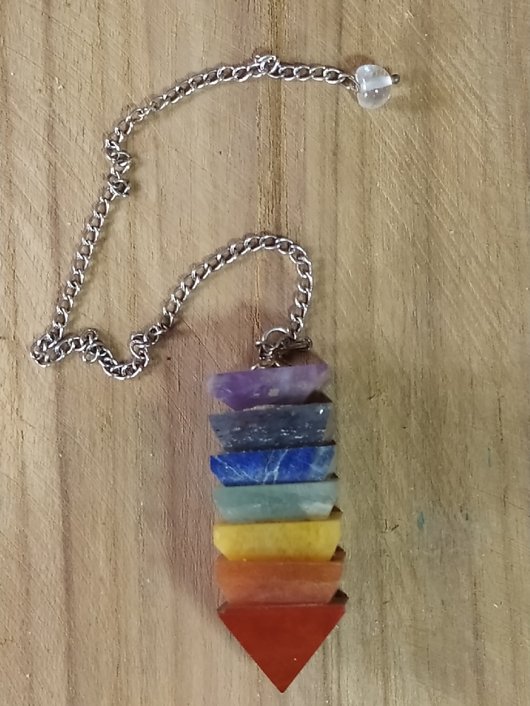 Pendule aux 7 chakras en pierre véritable avec chainette et perle